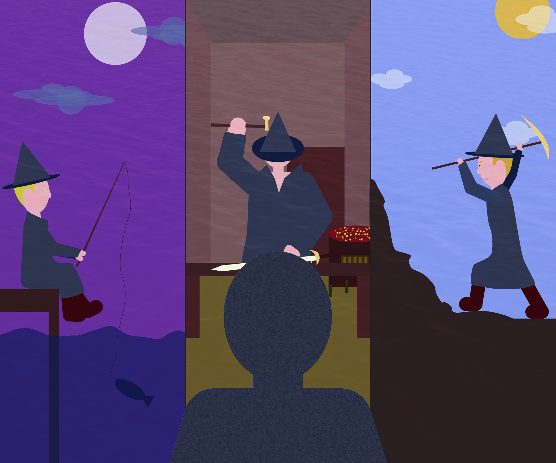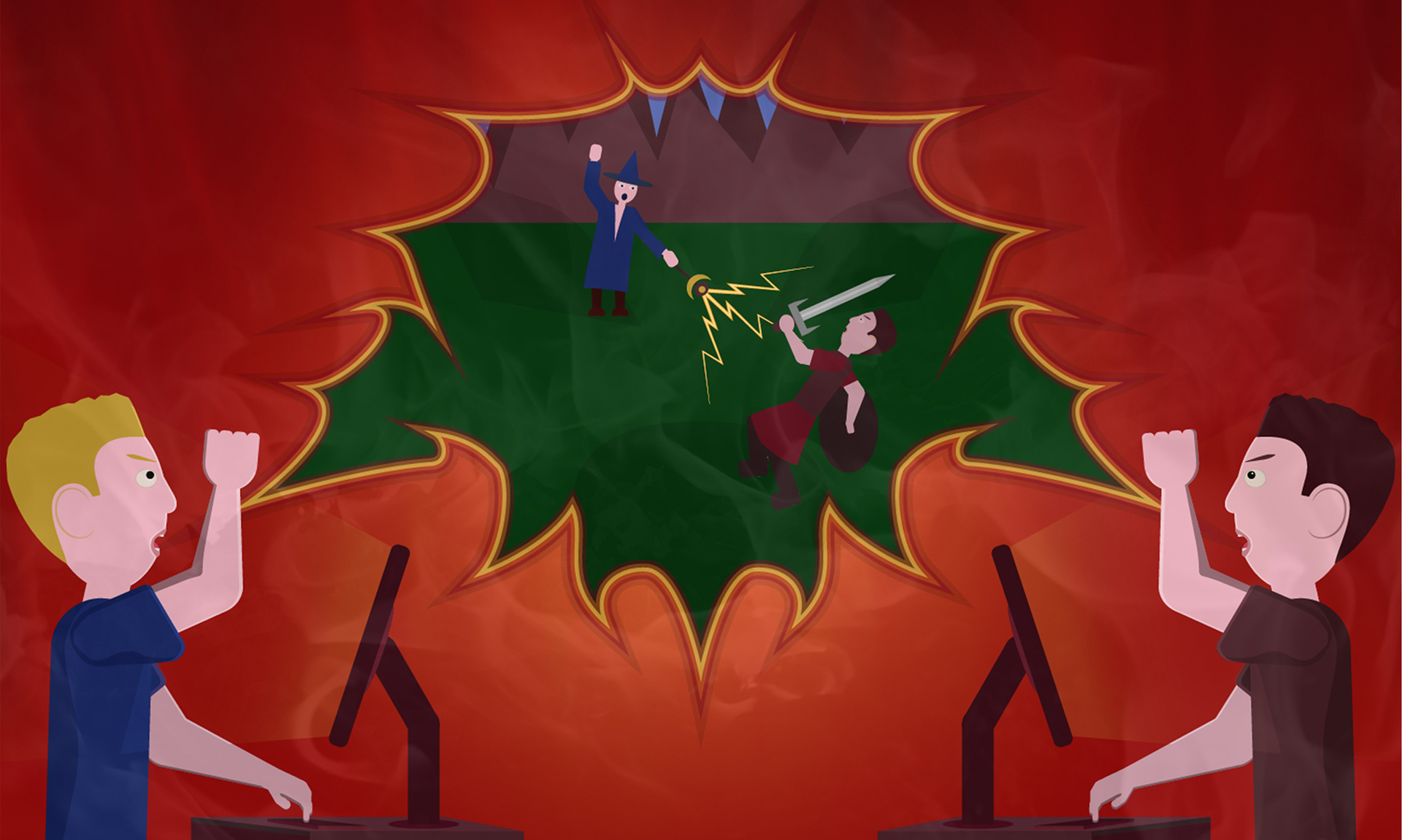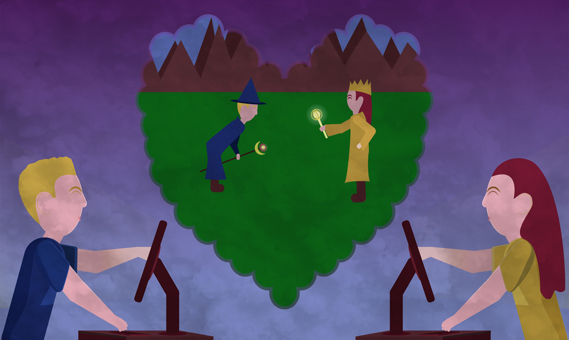 A three-piece editorial exercise using the article “Sociology in Fantasia” from reason.com as inspiration. The article was a study of online interactions, more specifically through online roleplaying games. The article spoke to the various ways that users engage with each other online through games like World of Warcraft (WOW). The article spoke to how online gaming and internet interactions can range wildly from spreading hate to finding love. It also discussed how online gaming has evolved to include so many resource gathering processes, such as mining ore, fishing, and crafting, that progressing to the highest levels of some of these games can be akin to a second job. All three images created using Adobe Illustrator.